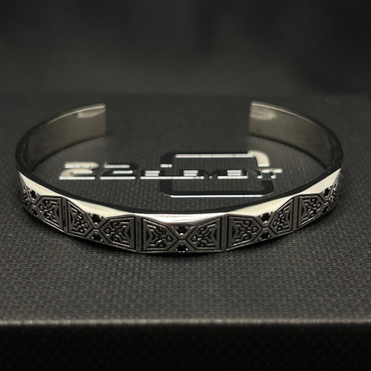 92.5% Silver Geometric Design Open Cuff Bracelet