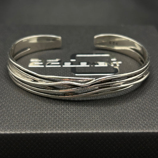 92.5% Silver Retro Wave Open Cuff Bracelet