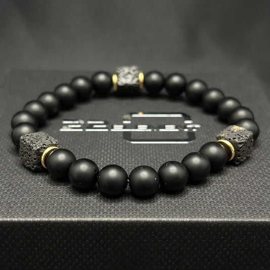 Ceramic Black Onyx with Lava Cube Bracelet