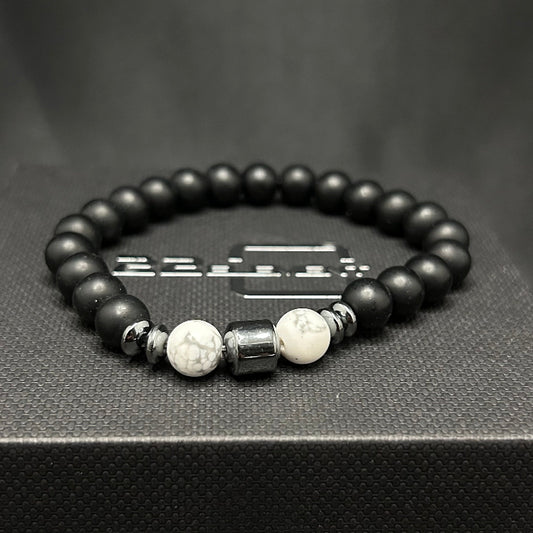 Ceramic White Onyx with Lava Sphere Bracelet