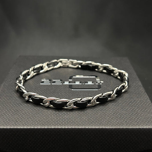 Stainless Steel Black Leather Bound Cuban Link Bracelet