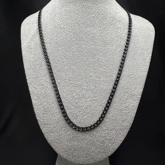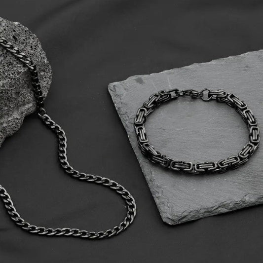 Stainless Steel Cuban Link Necklace & Bracelet Set Black