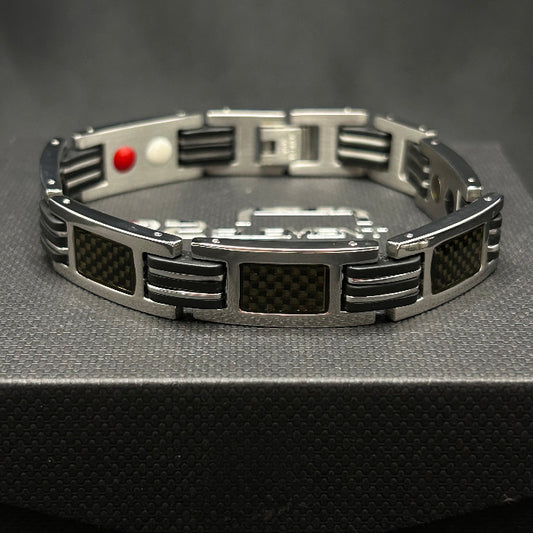 Stainless Steel Carbon Fibre Chain Link Magnetic Bracelet