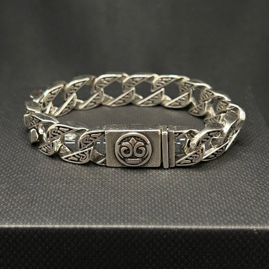 Stainless Steel Valknut Curb Chain Link Bracelet