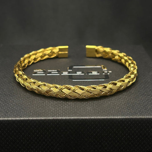 Titanium Woven Open Cuff Bracelet Gold Plated