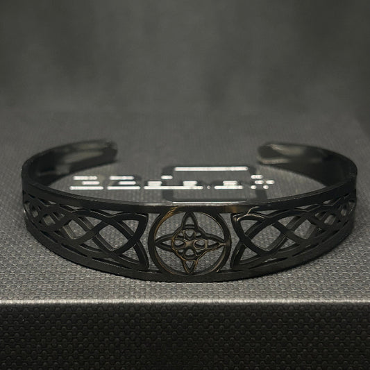 Stainless Steel Black Witch Knot Open Cuff Bracelet